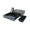 Szuflada może pracować w dwóch konfiguracjach: z możliwością otwierania poleceniem z kasy, lub za pomocą klucza (również możliwość otwierania awaryjnego). Dzięki sterowaniu impulsem z zakresu 5 – 12 V, 0,7 A o minimalnym czasie trwania 300ms, szuflada współpracuje z większością dostępnych na rynku urządzeń.